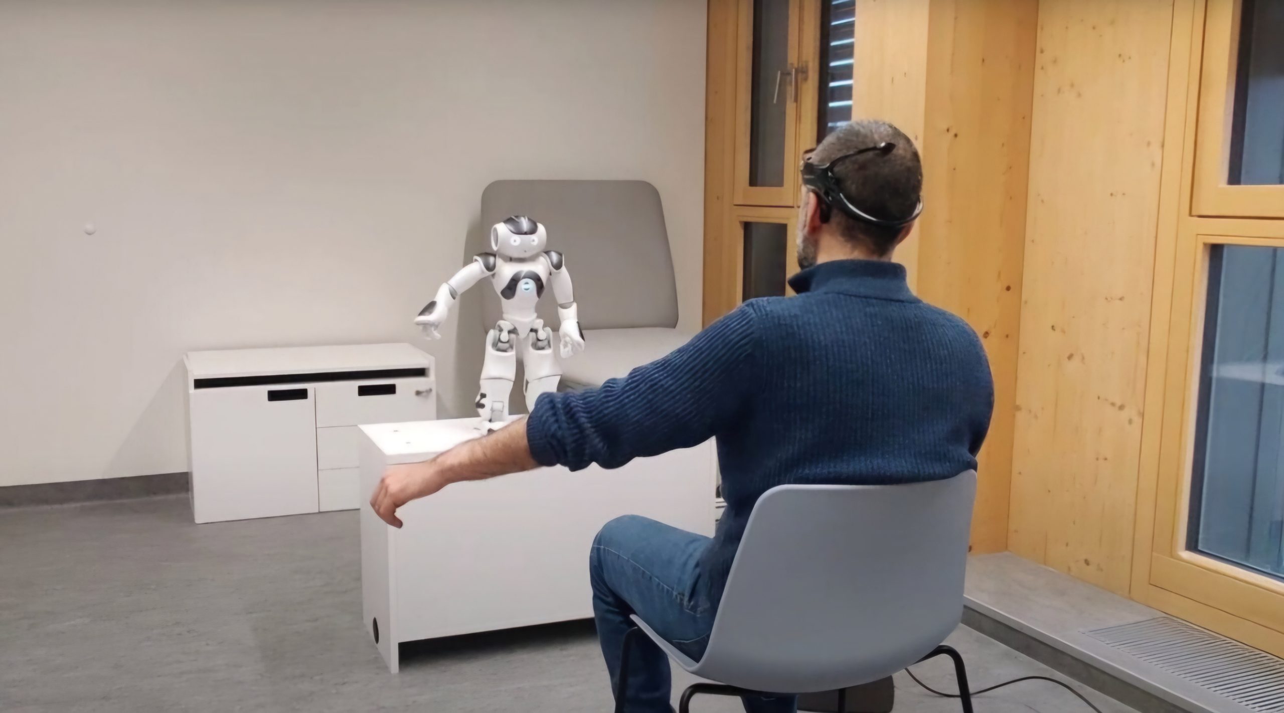 robotun beyin sinyallerini izleyen bir kulaklık kullanarak hastalarla iletişim kurduğu bir sistem geliştirildi. Bu sistemle birlikte