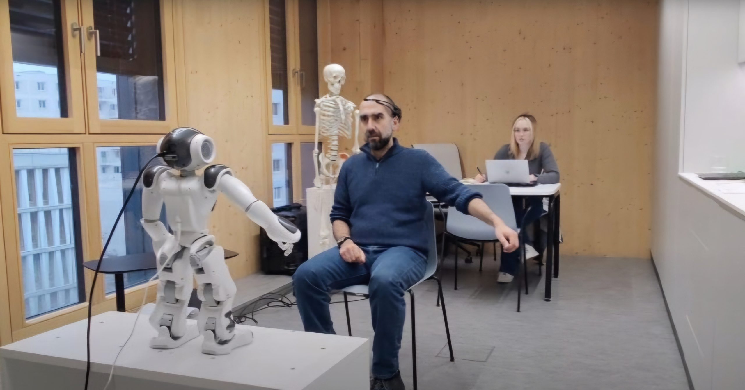 robotun beyin sinyallerini izleyen bir kulaklık kullanarak hastalarla iletişim kurduğu bir sistem geliştirildi. Bu sistemle birlikte