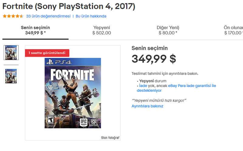 Buradan bir örneğine ulaşabileceğiniz gibi yine aynı site içinde birçok ilan bulabilirsiniz. Yani anlayacağınız eğer elinizde orjinal bir Fortnite kopyası varsa bu yüzlerce dolar edebilir.