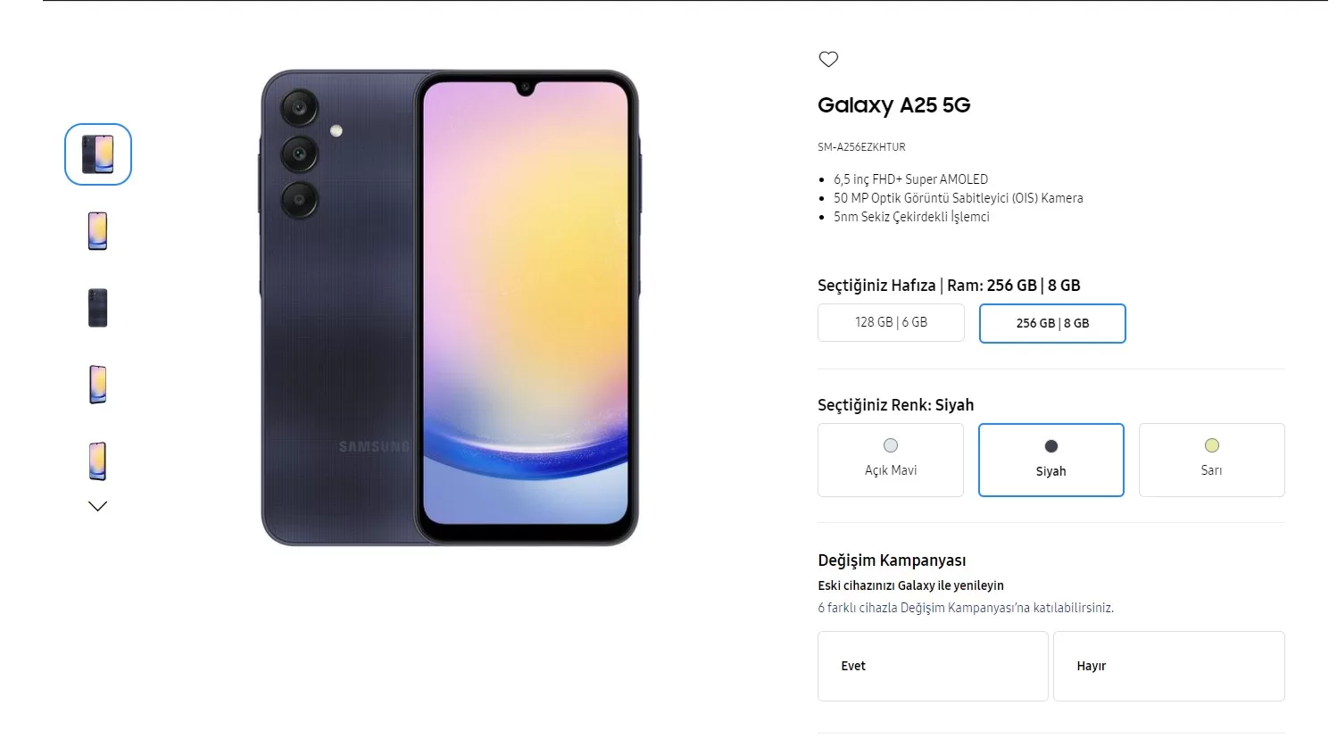 Samsung Galaxy A15 ve Galaxy A25 5G ikilisinin iyi olan modeli A25 5G versiyonuna. Söz konusu akıllı telefonda da sadece 5G versiyon olduğunu görüyoruz.