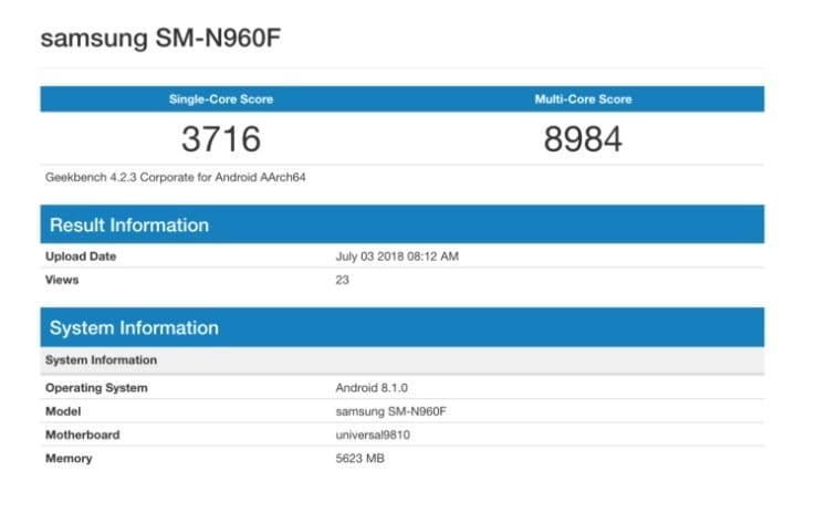 Samsung'un bir cihazı Geekbench testlerinde gözüktü. SM-N960F kodlu cihazın özellikleri tam anlamıyla Note 9'un aynısı. Gelin Galaxy Note 9'un performans sonuçlarını detaylıca inceleyelim.
