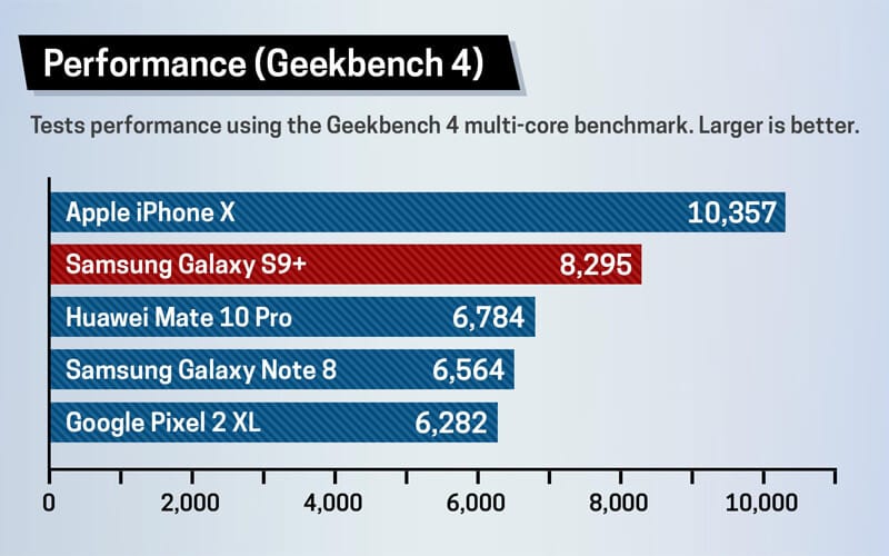 Her yeni nesil amiral gemisi cihaz öncekilere nazaran daha iyi işlemci performansı sunarlar. Bu iki cihazda önceki nesillere göre daha performanslı ve güçlüler. Ancak iki cihaz arasında bir kıyas yapacak olursak Apple'ın kendi cihazları için özel olarak ürettiği A11 işlemci, Android cihazlarda kullanılan Snapdragon 845'ten daha hızlı.