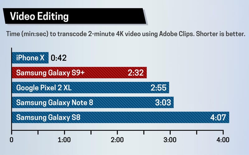 Üst kısımdaki resme bakacak olursanız sonuçlara net bir şekilde ulaşabilirsiniz. Her iki cihazda Geekbench 4 testine tabi tutulduğunda iPhone X'in galip geldiğini görebiliyorsunuz. Yine üst kısımda video render sürelerine baktığımızda iPhone X'in daha hızlı render aldığını görebiliyorsunuz. Bu konuda iPhone X almak daha mantıklı duruyor.