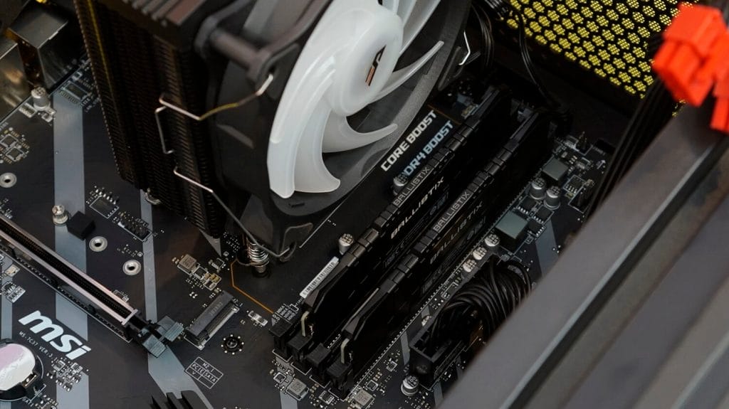 RAM kısmında Dual-Channel performansından faydalanmak için Crucial'in geliştirmiş olduğu Ballistix serisinden 8+8 16 GB 3000MHz CL 16 değerindeki RAM'leri kullanılıyor.