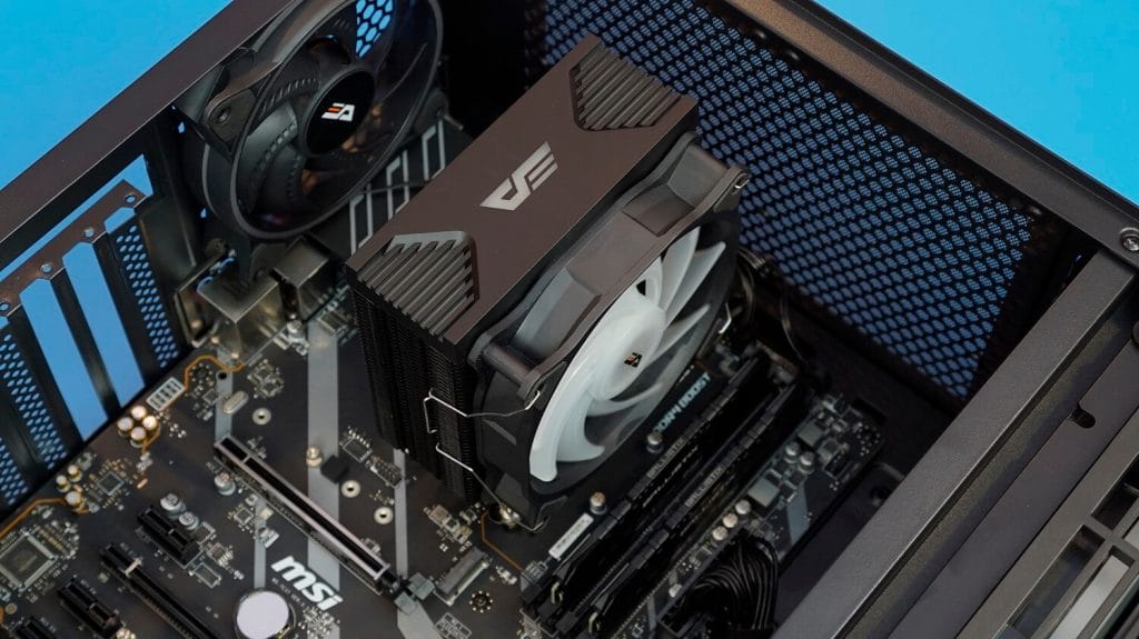CPU soğutucusu bölümünde darkFlash'ın geliştirmiş olduğu DarkAir 120mm fana sahip RGB kule tipi soğutucusu bu sistemimizde bizlere eşlik ediyor.