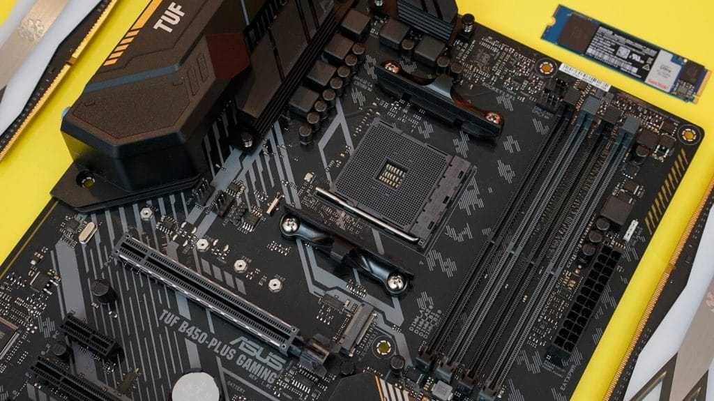 Sırada bir bilgisayarın en önemli donanımlarından bir tanesi olan anakart yer alıyor. Bu sistemimizde ASUS TUF Gaming B450-Plus modelini kullanıyoruz. Niye B550 kullanmadınız diye soracak olursanız, B450 ile B550'nin arasında bir fiyat farkı bulunuyor. Performans farkı açısından da PCIe 4.0 ve M.2 SSD kullansaydık B550 kullanmanın bir mantığı olacaktı, ancak şu anki durumda biraz daha fiyat performans kısmında kalmak istememizden dolayı bu modeli tercih ediyoruz.