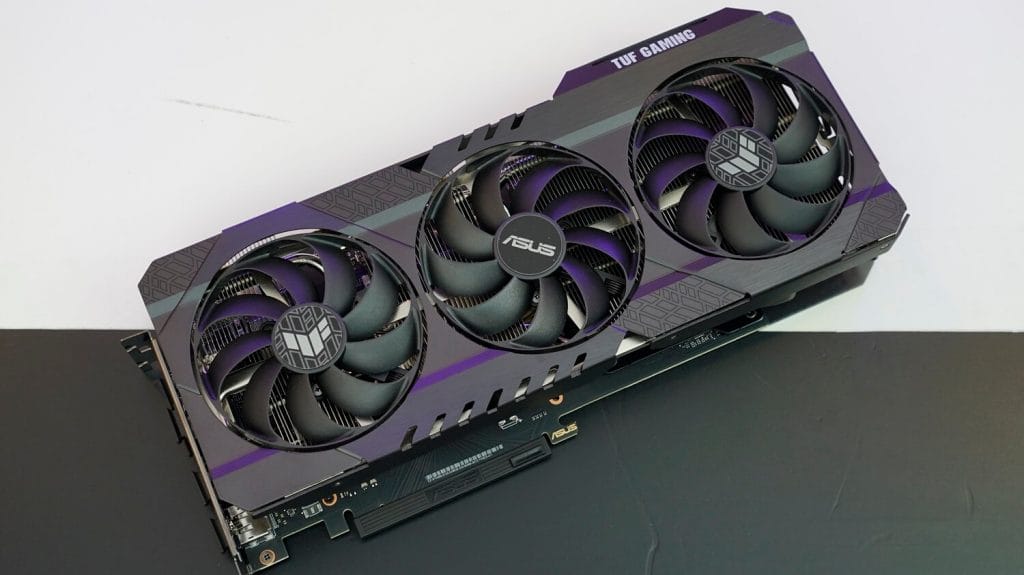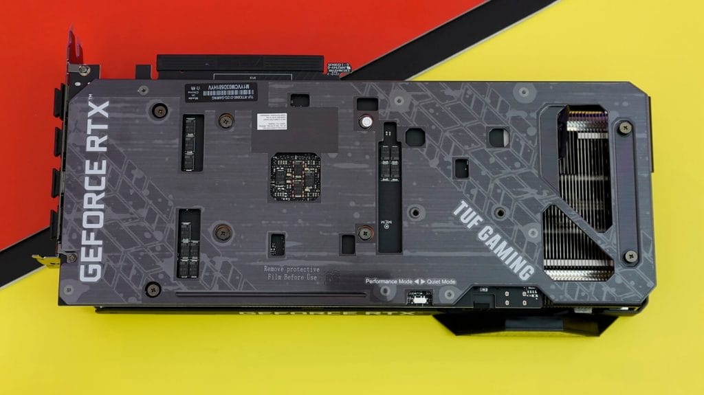 Özellikle bu durum 3000 serisi ekran kartlarındaki TUF modelleri için geçerli görünüyor. Bu ekran kartımızda üç adet fan bulunuyor. Aynı zamanda arka tarafında da güzel ve şık bir backplate yer alıyor.