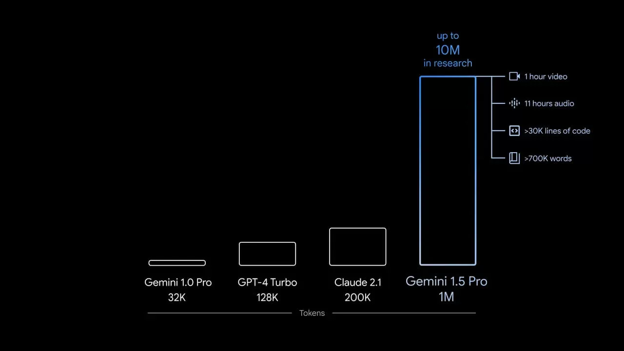 Bağlam penceresi tarafında 1 milyon token'lık Gemini 1.5, şu an için sınırlı bir erişime sahip olacak.