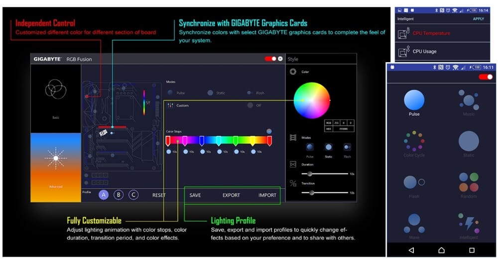 Yeni geliştirilen Gigabyte AORUS RGB Ram kitleri yine AORUS yazılımı ile birlikte çalışacağı gibi, diğer Gigabyte bileşenleriniz ile senkron halinde kullanabileceksiniz. Bazı kitler MSI, ASUS ve Gigabyte RGB teknolojisi ile uyumlu olarak karşımıza çıkıyor ve tek platformda hepsini kullanabiliyorsunuz. Ancak Gigabyte burada bağımsız hareket etmeyi seçiyor.