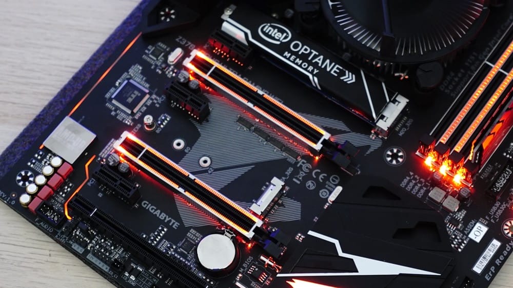 GIGABYTE AORUS Z370 anakart, teknik detaylarında sunduğu Intel Optane desteği ile birlikte geliyor. Üzerinde iki adet M.2 yuvası barındıran anakart, RAID destekleri de sunuyor. Bu sayede kullandığınız depolama birimi HDD olsa bile SSD seviyesinde yüksek performans alabiliyorsunuz. Ayrıca anakart 6 adet SATA bağlantısına imkan tanıyor.