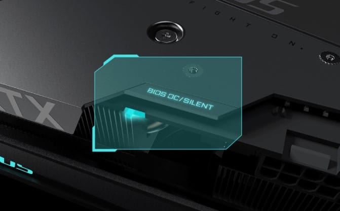 çift BiOS, kolayca değiştirilebilir olan bir seçenek. Sessiz mod ve varsayılan OC modu olmak üzere iki mod arasında geçiş yapılabiliyor.