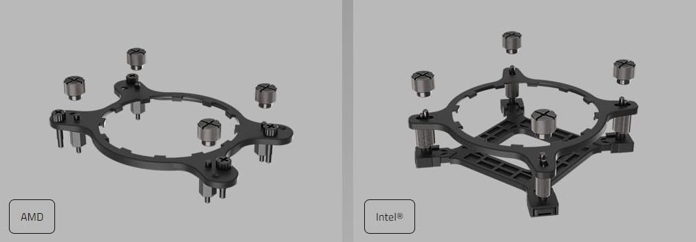Yeni sıvı soğutucular AMD TR4, AM5, AM4 sTR5 ve Intel LGA 115x, 1200, 1700, 1851 soketleri ile uyumlu. Kutunun içerisinden ilgili aparatlar çıkarak montajı sağlanıyor.
