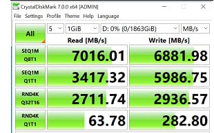 7000MB ve 6500MB/s hızlarına ulaşıyor.