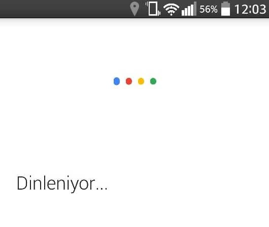 Eğer Google Now uygulamasını açtıktan sonra mikrofon işaretini görürseniz, bir kere tıkladığınız zaman yukarıdaki gibi "Dinleniyor..." ibaresi ile karşılaşacaksınız. Bu demek oluyor ki, telefona doğru konuşacağınız her kelimeyi Google Asistan sizin için arayacak.