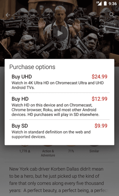 Google Play Filmler üzerinden 4K kalitesinde film izleyebilmek için biraz para bayılmamız gerekiyor. Normalde 4 dolardan başlayan 1080p Full HD filmler, 4K kalitesine çıktığında fiyatını ikiye katlayarak 24 dolarlara tırmanabiliyor. Bu da nereden baksanız iki-üç kişilik sinema bileti parasına tekabül ediyor.