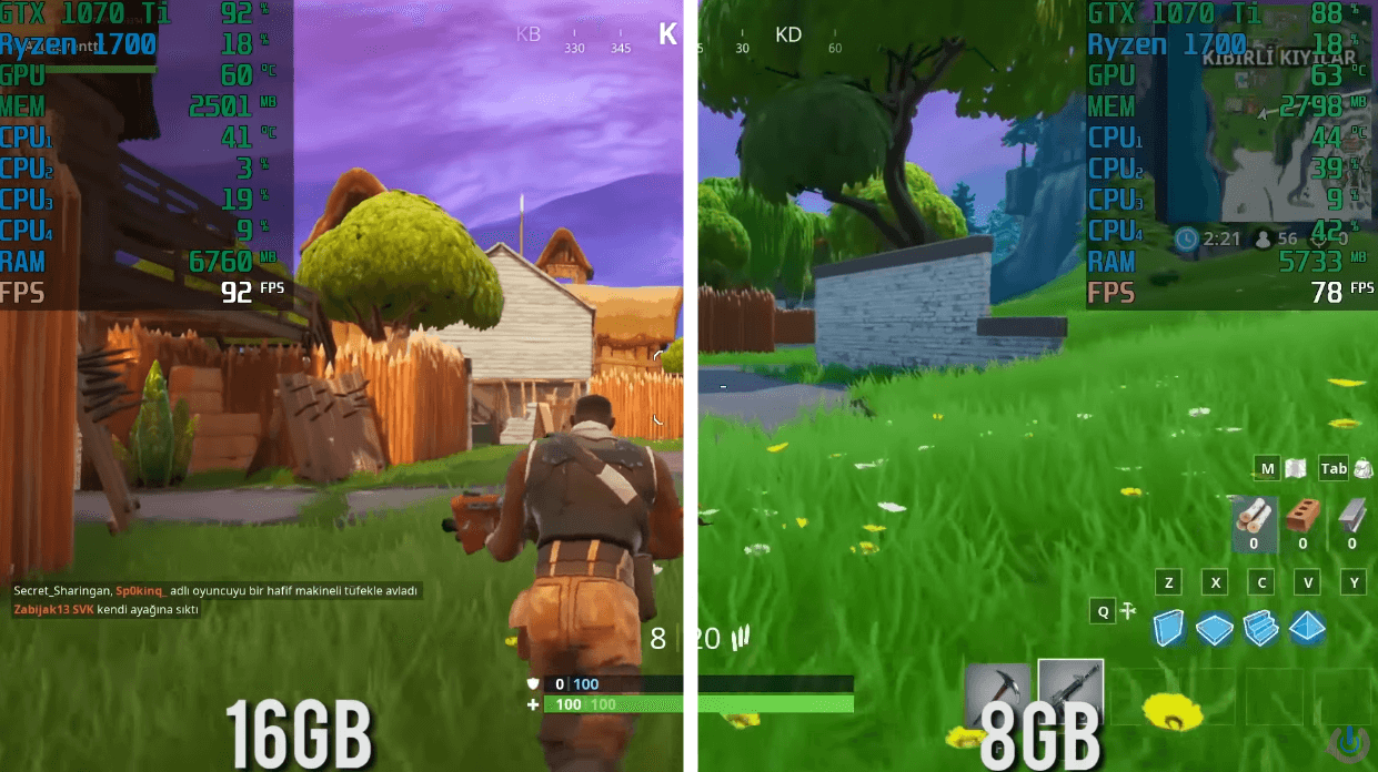 Görsel Kaynak: PC Hocası YouTube kanalı 8GB RAM vs 16GB RAM[/caption]