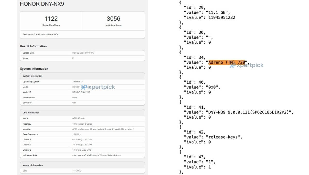 Sır perdesini aralayan test sonuçlarına göz attığımız zaman cihazın HONOR DNY-NX9 kod adına sahip olduğunu görmekteyiz. Beraberinde modelin tekli çekirdek testinden 1.122 puan, çoklu çekirdek testinden ise 3.056 puanı başarıyla elde ettiğine şahit oluyoruz. Bu bağlamda sonuçların henüz için resmen doğrulanmadığını bir kez daha vurgulamakta fayda var.
