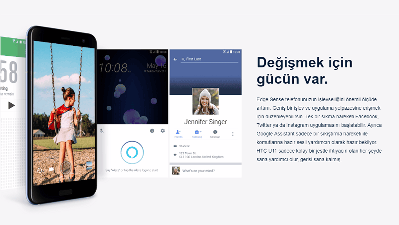 Diğer özelliklerinden bahsedecek olursak mavi, lacivert, siyah, kırmızı ve beyaz olmak üzere 5 farklı renk seçeneği bulunacak olan HTC U11, parmak izi okuyucusuna HTC Sense Companion adındaki "yaşam koçuna" sahip. Yanlış değil, Sense Companion telefonun içinde standart gelen bir özellik ve size birçok durumda yardımcı olmak için tasarlandı. Sizi tanıyan yapay bir zekaya sahip olan SC, kullandıkça günlük rutininizi öğreniyor ve size bunu hatırlatıyor. Sadece bununla da kalmıyor, sağlık, spor ve birçok konuda da size yardımcı oluyor.