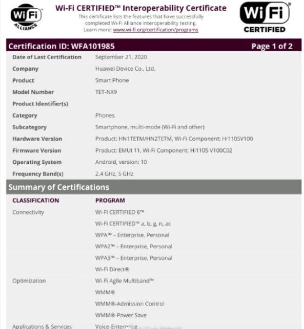WiFi Alliance web sitesinin belgesine göre, Huawei Mate X2'nin WiFi 6 teknolojisini destekleyeceğini ve kutudan çıkar çıkmaz içerisinde Android 10'u çalıştıracağını gösteriyor. Bunun ötesinde, katlanabilir akıllı telefonla ilgili önemli hiçbir şeyi açığa çıkarmıyor.
