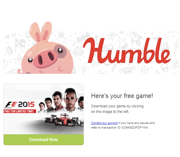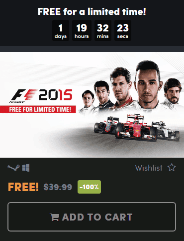 Humble Bundle gerçekten yine yaptı krallığını hocalar. F1 2015 oyunu yine kampanyaya girerek kısa bir süreliğine tamamen ücretsiz oldu. Steam'da şuanda F1 2015 oyunu 59 TL'den satıldığı için yarış severlerin dikkatini çekeceğini düşündük. Zira oyunun ben 2017 versiyonunu da bayılarak oynamıştım.