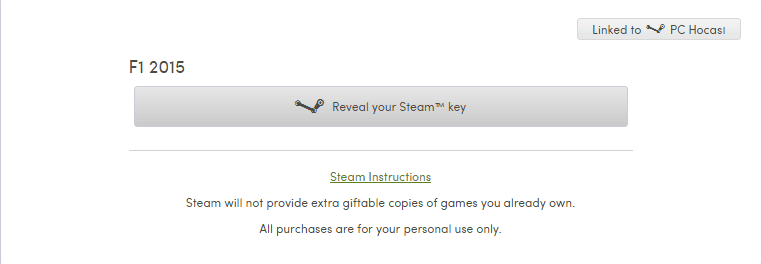 Yukarıdaki işlemler tamamlandıktan sonra, 'Reveal your Steam Key' seçeneğine tıklayarak F1 2015'in orjinal Steam keyini oluşturun. Keyinizi aldıktan sonra da yapacağınız işlem çok basit. Steam'a giriş yaparak 'Steam'da bir ürün etkinleştir' deyin ve oyununuz hayırlı olsun.