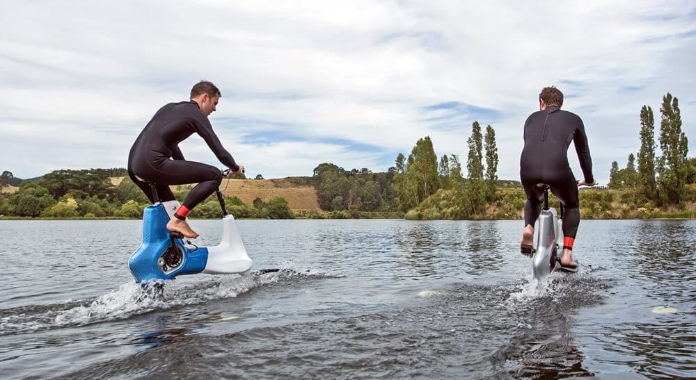 Üzerine binen kişinin ağırlığını bisiklete eşit olarak dağıtarak, suyun üzerinde de batmadan durabilmenizi sağlıyor. Hidrolik kanatlar öne doğru pedal çevirildiğinde sürüklenmeyi azalttığı için, bisikletin sudan yukarı kalkarak kanat görevi görmesine imkan tanıyor.