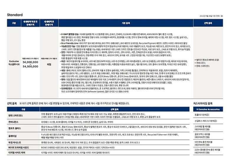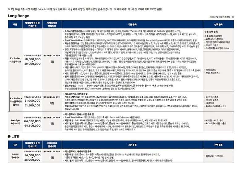 - E-Lite Trim modeli 54.500.000 Güney Kore Wonu ile (41.000 €) 55.000.000 Güney Kore Wonu