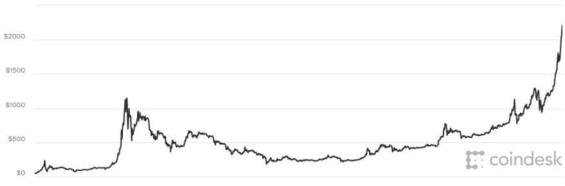 Bitcoin'in icadından bu yana seyri. Grafik: Coin Desk