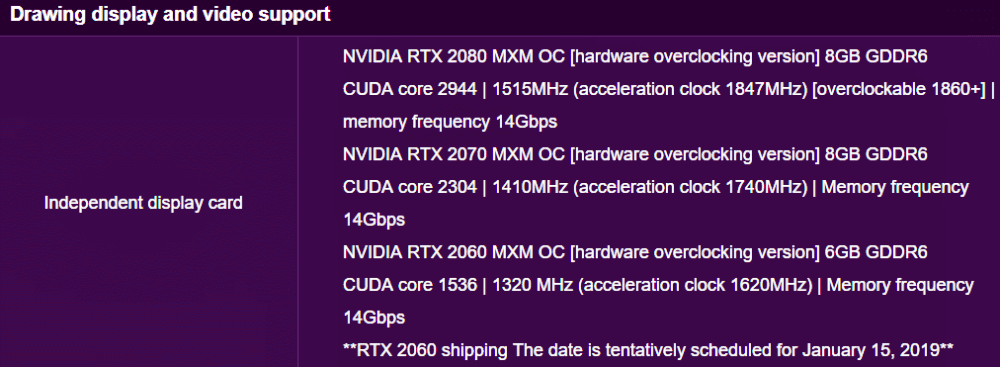 Laptop i9-9900K işlemcisi ve RTX 2080 ekran kartı ile geldiği gibi, diğer RTX 2060 Mobil ve RTX 2070 Mobil ekran kartlarından da haberler var.