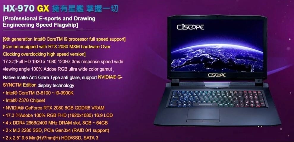 CJSCope adlı Çin'li OEM şirketi, RTX 2080 MXM ekran kartına sahip ilk modelini onayladı. HX-970 GX adı verilen dizüstü bilgisayar, 2944 CUDA çekirdeği ve 1847 MHz çekirdek hızına sahip RTX 2080 ekran kartı ile satışa sunulacak.