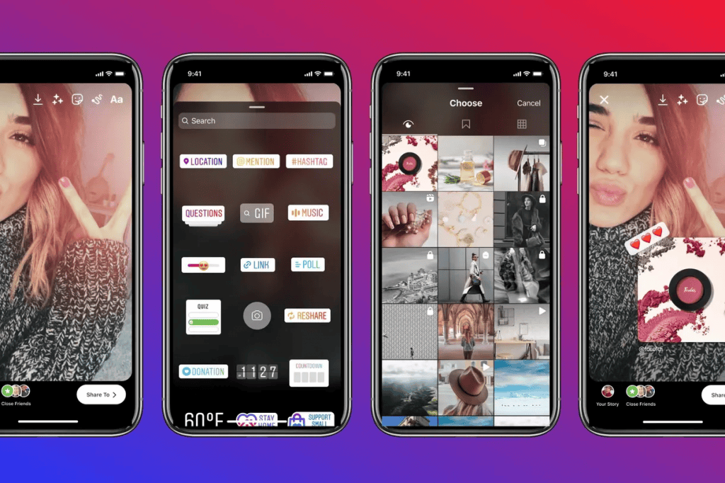 Şirket, Hikayeler'e yerleştirilebilecek bir "yeniden paylaşma" etiketini test ediyor. Seçildiğinde, "son görüntülenenler" sekmesi karşınıza çıkıyor ve kullanıcıların son bir saat içerisinde Instagram akışlarında ve/veya keşfetlerinde gördükleri, kaydettikleri veya yayınladıkları gönderiler arasından seçim yapmalarına olanak tanıyor ve daha sonra hikayelerinde bunlardan seçim yaparak paylaşabiliyorlar. IGTV, Reels ekleyebilir ve videoları hikayenize koyabilirsiniz.