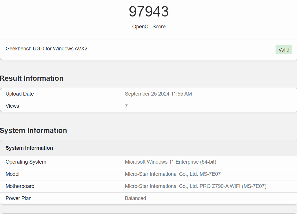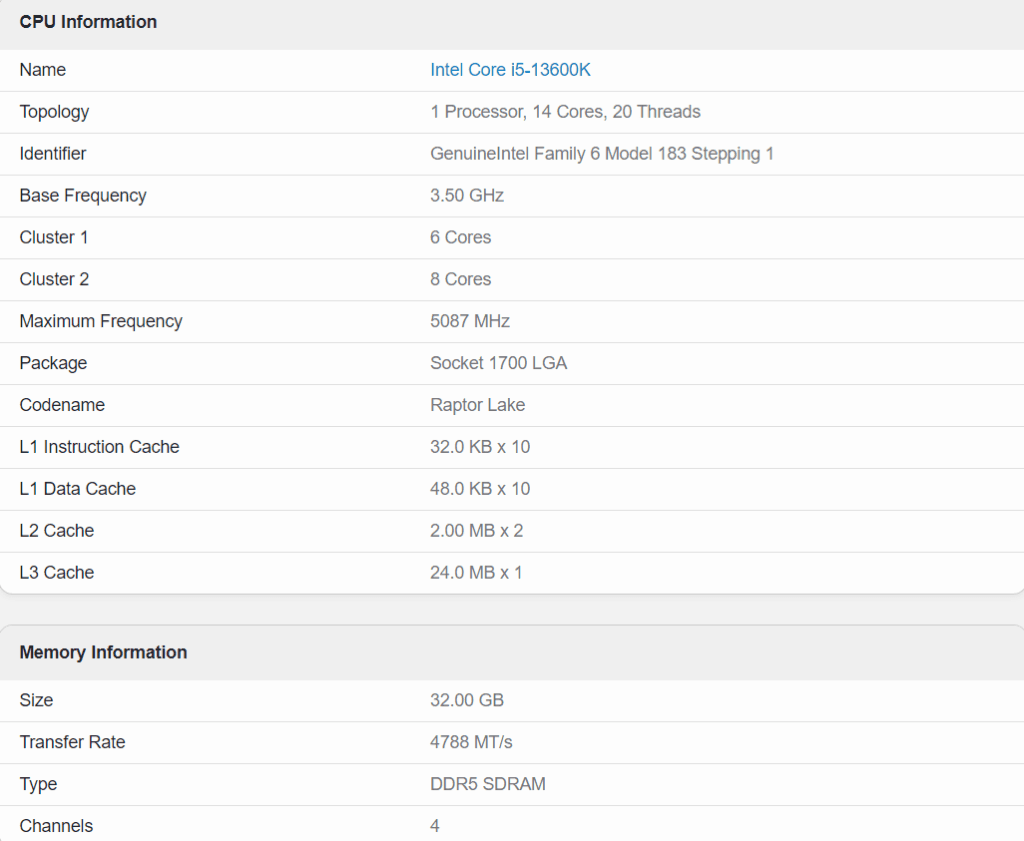GeekBench 6'da OpenCL ile test edilen Battlemage G21 GPU, Intel Core i5-13600K işlemci ve 32GB DDR5 4800MHz hızında çalışan ramler ile çalıştırılmış.
