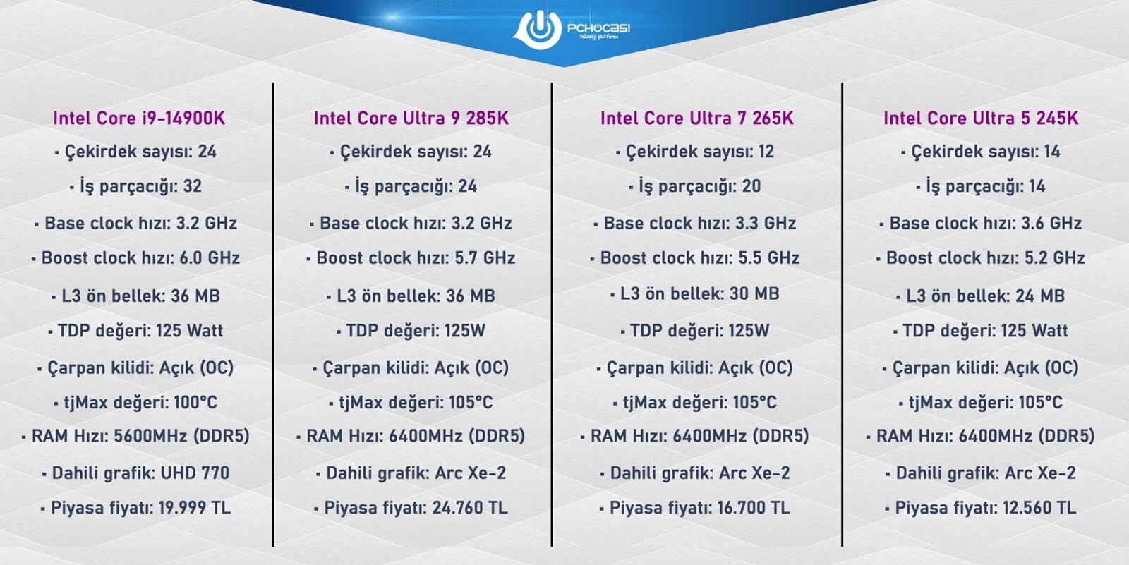 Intel 265K olacak gibi. Diğerlerine nazaran hem fiyat, hem de performans olarak daha mantıklı.