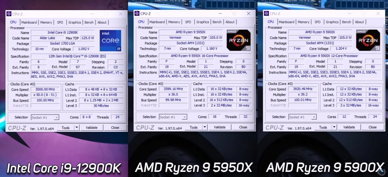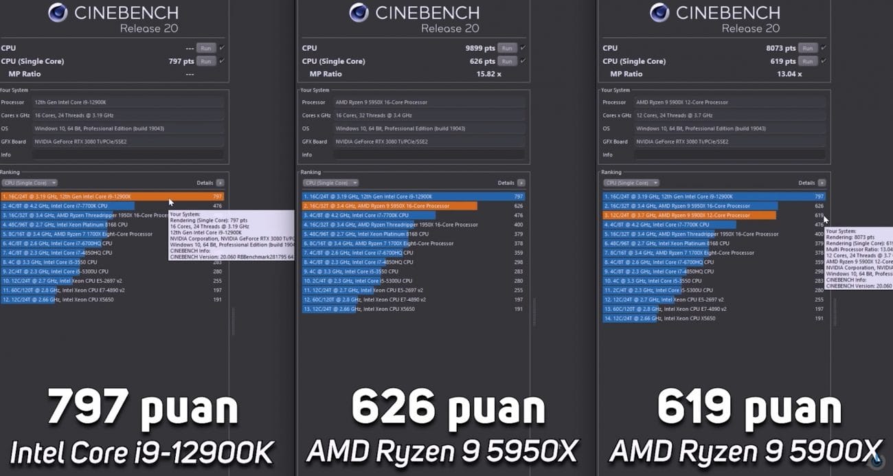 Intel i9-12900K vs AMD Ryzen 5950X vs AMD Ryzen 5900X Karşılaştırması