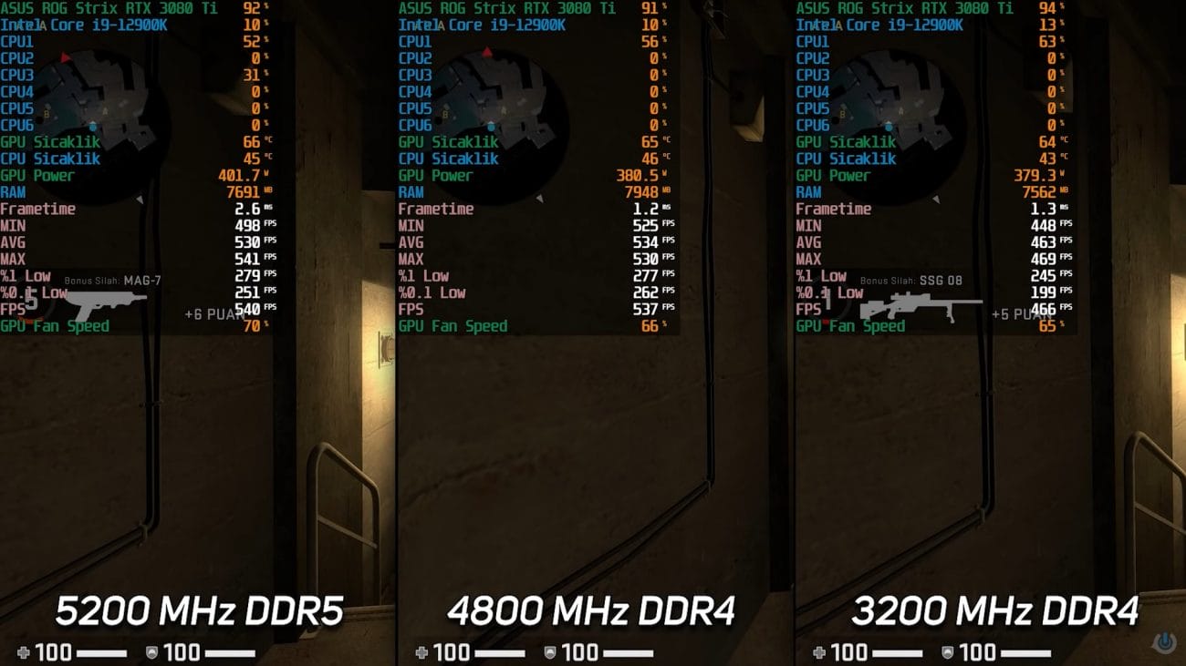 DDR5 5200 MHz vs DDR4 4800 MHz vs DDR4 3200 MHz RAM Testleri