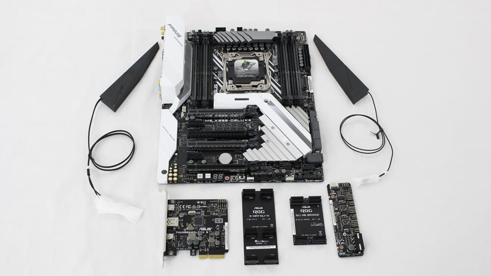 Bu anakart modelini satın aldığınızda ise kutunun içerisinden sizleri adeta bir 'çeyiz' bekliyor. Zira SLI köprüsünden tutun, ethernet kartına kadar tüm detaylar unutulmamış. Ekstra olarak ASUS 'belki adamda yoktur' diye düşünerek WiFi antenlerini koymayı dahi ihmal etmemiş.