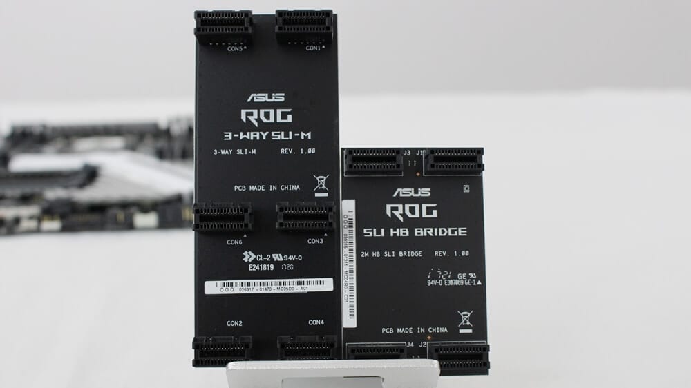 Önemli Not: Bu arada her anakart firmasının yapamadığını yine ASUS yapmış hocalar. Aşağıdaki görselde gördüğünüz üzere 3-Way SLI kartını da yine anakartın içerisinden alabiliyorsunuz. Bazı kullanıcılarımız belki de bu SLI kartını ilk kez görecekler. O yüzden ASUS Prime X299-Deluxe parasının karşılığını sonuna kadar veren 'üst segmentteki' nadir anakartlardan bir tanesi.