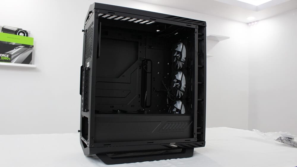 Kasa bizlere ön panelinde bulunan RGB aydınlatması ile birlikte eşlik ederken, 2 adet 12 CM büyüklüğünde PWM fan ile geliyor. Aynı zamanda 36 cm sıvı soğutma desteği, 240 mm radyatör desteği, 165 mm CPU fan desteği ve 375 mm VGA desteği sunuyor. Rakamlardan da anlaşılacağı üzere son derece büyük bir model.