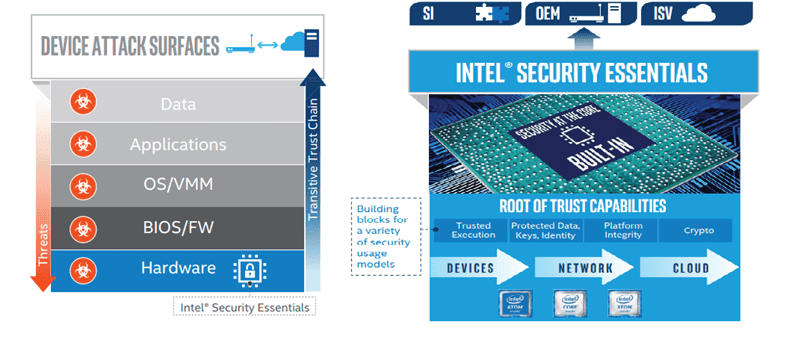Intel son zamanlarda yaşanılan şikayetlerden ders almış olacak ki güvenlik girişimlerini de tek bir çatıda birleştiriyor. "Platform Trust Technology", "Platform Firmware Resilience" ve bazı işlemciler ile chipsetler için özel olarak yapılmış çeşitli teknolojiler Intel Security Essentials çatısı altında birleştirildi.