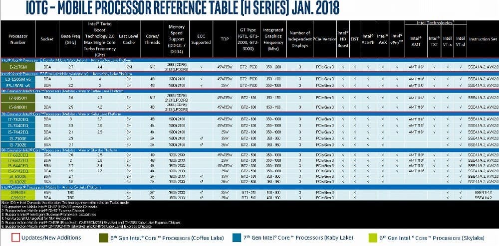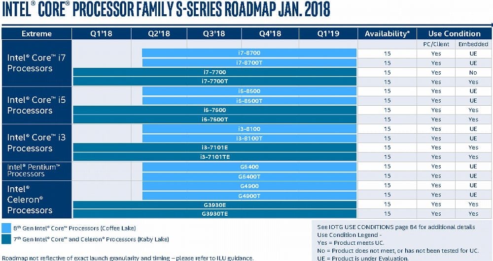Yukarıdaki tabloda i7-8700T - i5-8700T - i3-8100T - G5400T ve - G4900T ve daha pek çok yeni işlemci modellerinin detaylarını görebilmek mümkün. Ancak hemen onun üstündeki var olan işlemci modellerinin de güncelleneceği belirtiliyor.
