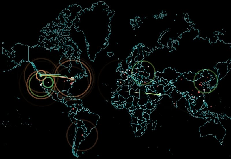 Bu görmüş olduğunuz harita siber dünyada yapılan saldırıları gerçek zamanlı olarak gösteriyor.