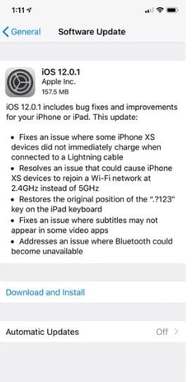 Apple, yeni modellerini piyasaya sürüldüğünden beri iPhone XS ve XS Max kullanıcılarını rahatsız eden bazı hataları düzelten iOS 12'ye bir güncelleme yayınladı. IOS 12.0.1 güncellemesi, iPhone veya iPad'inizde Ayarlar -> Genel -> Yazılım Güncellemesi'nde şimdi indirilebilir durumda.