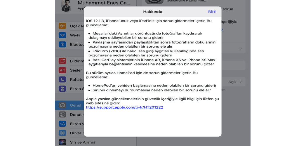 iOS 12.1.3 güncellemesini indirmediyseniz, indirmek için Ayarlar>Genel>Yazılım Güncelleme yolunu takip edebilirsiniz.
