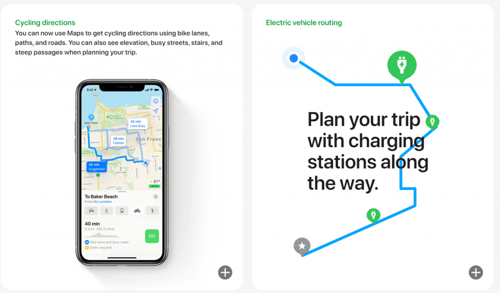 Eylül ayında iOS 14 destekleyen cihazlara geldiği zaman artık elektrikli arabalar, kendilerine özel yol tarifleri ile karşılaşacak. Uzun yol seyahatleri için araçlarını sık sık şarj edebileceksiniz. Ayrıca diğer alternatif rotaları görebileceksiniz. Elektrikli araçlar için en kısa yol tarifleri iOS 14 için Haritalar uygulaması ile gelecek.
