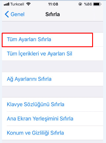 Ayarlar - Genel - Sıfırla- Tüm Ayarları Sıfırla seçeneğinden telefonunuzun ayarlarını sıfırlayınız.(Her hangi bir dosya silinmez)