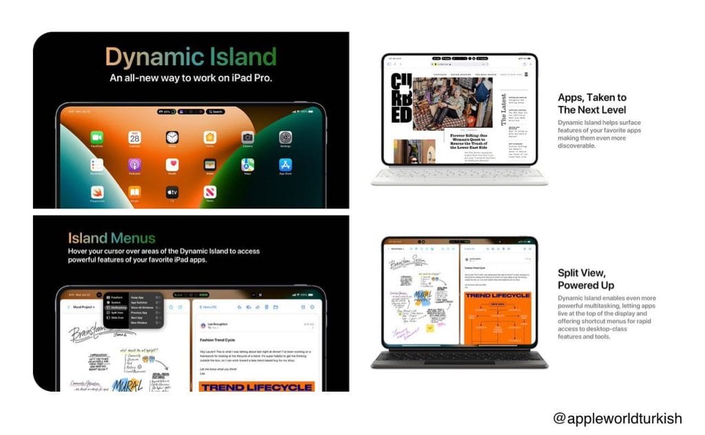 Ortaya çıkan raporlar ise gelecek dönemlerde iPhone 14 Pro modeli ile hayatımıza giren yeniliğin macOS ve iPadOS'e taşınacağı ve çeşitli erişilebilirlik ve farklı deneyimler sunulacağı iddia ediliyor. Hatta mevzubahis raporlar konu hakkında “Dinamik adanın iPad Pro'yu yepyeni bir düzeye taşıdığını hayal edin. Menü çubuğunu iPadOS'a yeni ve akıcı bir şekilde getirmek için mükemmel bir çözüm olabilir. Uygulamalar ve çoklu görev daha da ileri götürülüyor” ifadelerini paylaşıyor.