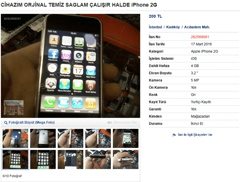 Mesele aslında şu; ilklerden bir tanesi olarak gösterilen iPhone 2G kullanıcılar ile 2007 yılında buluşmuştu. Aradan tabi tam 9 yıl geçti ve zaman içerisinde değeri katlanmaya başladı. Kullanıcılar da "gel vatandaş gel, ilk çıkan iPhone sadece bizde" edası ile internette satmaya başladılar. Sizce alıcısı çıkar mı ?