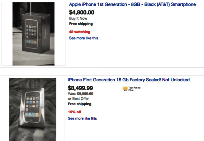 Şimdi bir iPhone 7'ye bakıyoruz bir de iPhone 2G'ye. Kullanıcı olarak siz hangisini alırdınız ? Tabii ki iPhone 7'yi değil mi ? Ancak yurt dışındaki psikopatlar böyle düşünmüyor. Eski iPhone modellerinin çok değerli olduğunu söyledikleri gibi, tam 8500 dolar gibi bir bütçe ile satmaya çalışıyorlar.