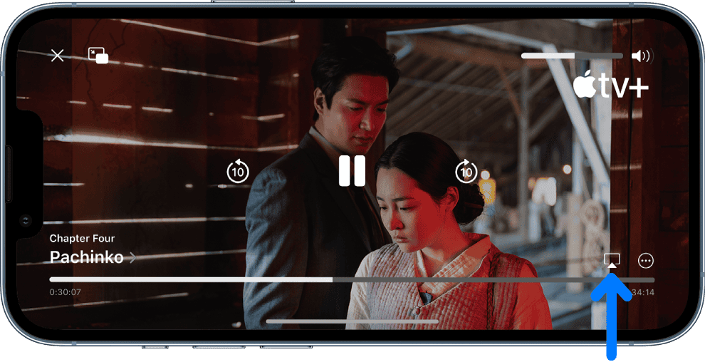 AirPlay düğmesi simgesine dokunun, sonra oynatma hedefi olarak Apple TV’nizi veya AirPlay 2 özellikli akıllı TV’yi seçin.