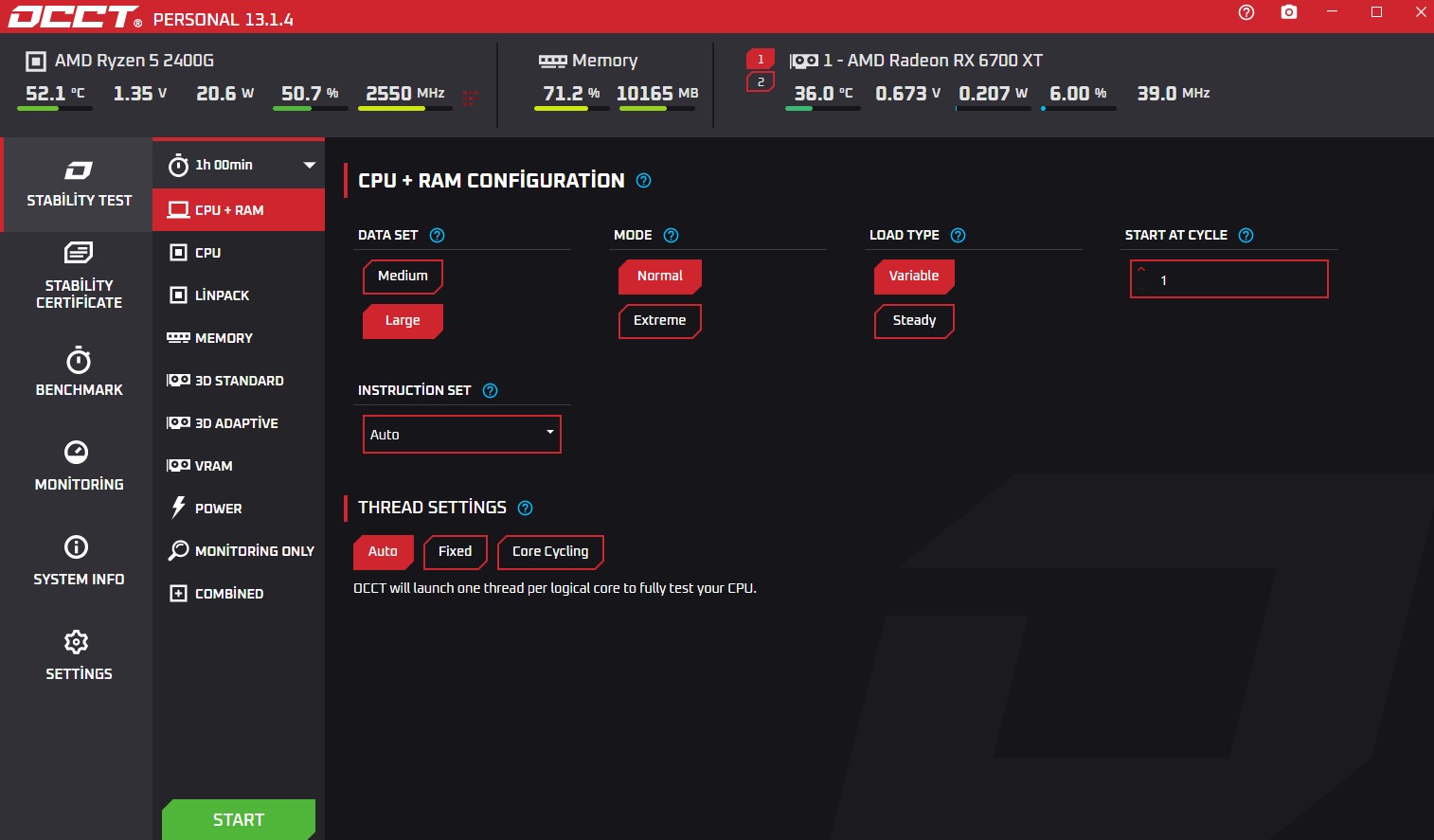Bencmark kısmında sadece CPU'yu test edebilir veya Stabily test kısmından tüm bileşenlerle birlikte test yapabilirsiniz.